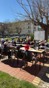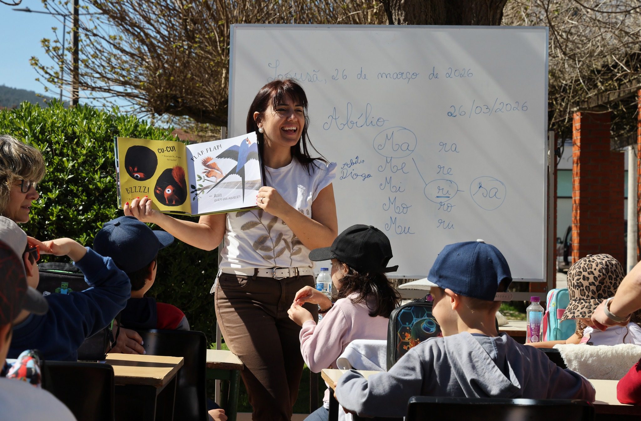 A atividade, intitulada “Aulas Fora de Portas”, envolveu os alunos do 1.º B, da Escola Básica n.º 2 da Lousã, que transformaram a Praça Sá Carneiro num verdadeiro espaço de aprendizagem. Fora do contexto tradicional da sala de aula, os alunos exploraram o meio envolvente, observaram elementos do quotidiano e contactaram com a comunidade local, desenvolvendo aprendizagens em contexto real.